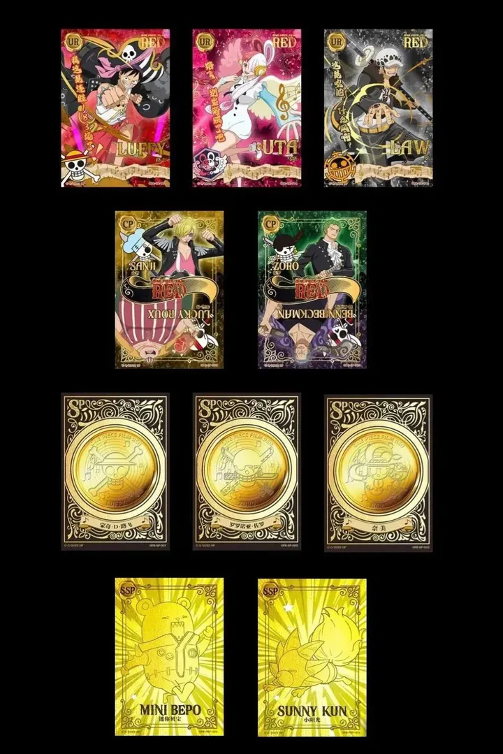 《航海王:红发歌姬》贵金属卡以电影《航海王:红发歌姬》为核心展开设计、以卡牌材质为主卖点,收录了SR、SSR、SD、UR、CP、SP、SSP共7个卡种,每款卡牌均含纯金纯银,其中UR、CP、SP、SSP均附带有克数认证的国检证书,而SSP纯金银王卡则是此系列的最大搏点。但笔者认为该系列在设计方面没有太出彩之处,仍有较大的上升空间。